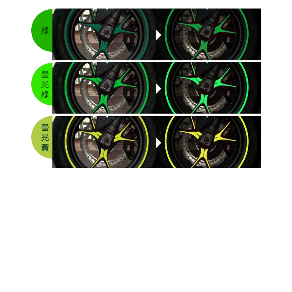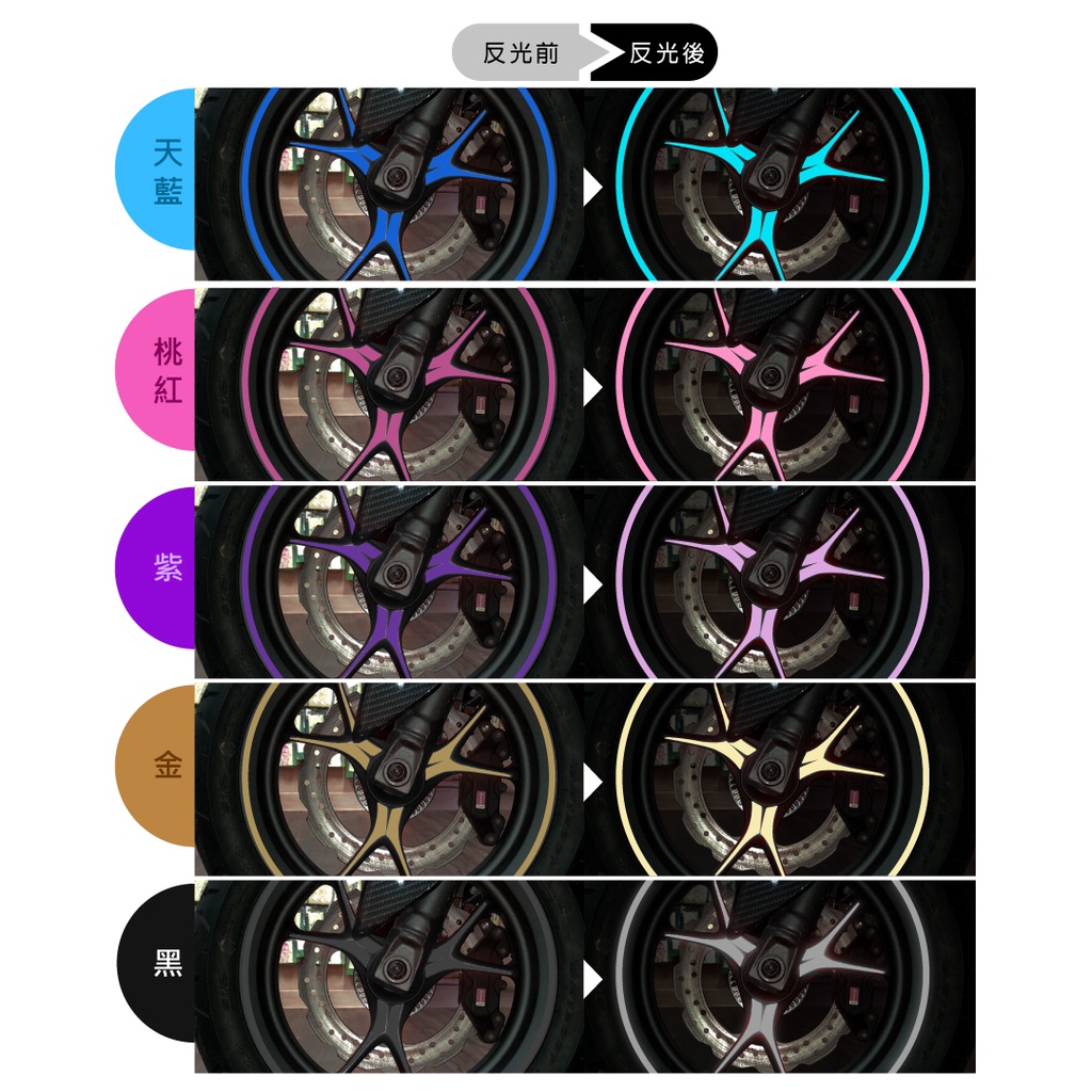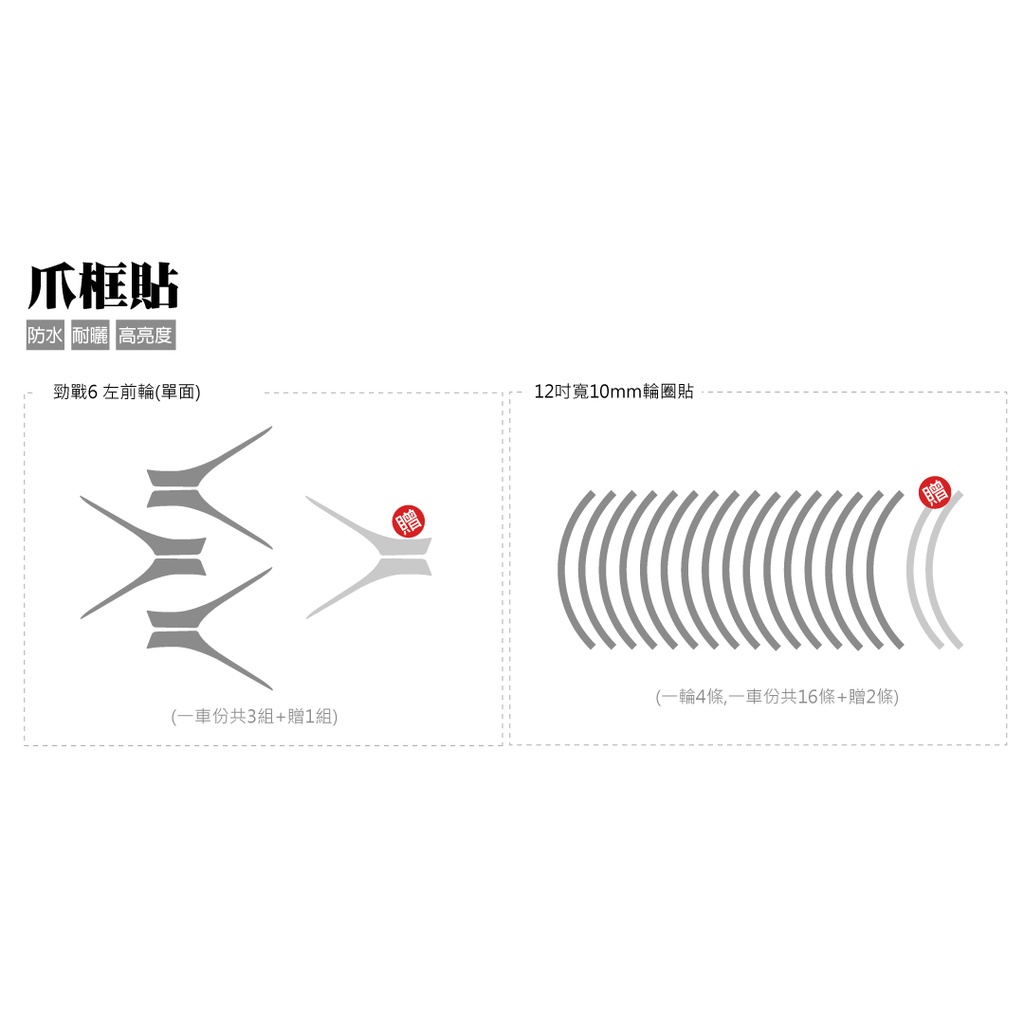• 1部車購買1份即可,每份包含1面爪貼(前輪左側)及12吋10mm輪框貼(四面)