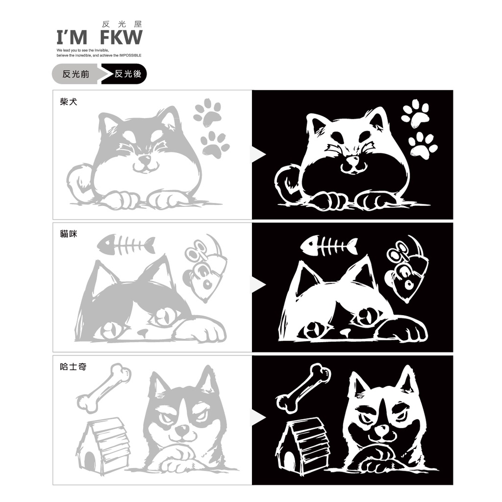 反光屋FKW 柴犬 哈士奇 貓咪寵物反光貼紙 組合優惠汽車貼紙 防水貼 檔風玻璃車窗車身貼紙 DIY 超可愛 可剪開貼飾