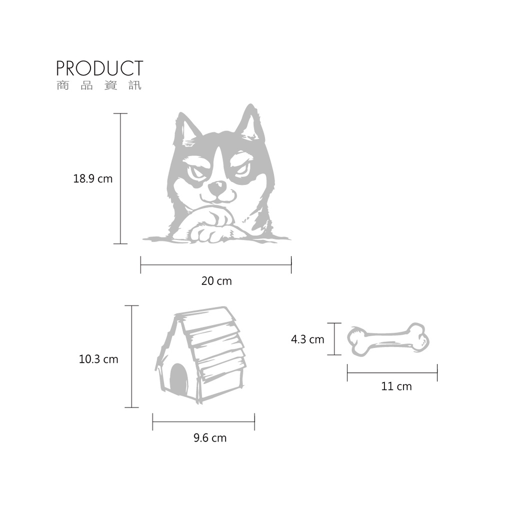大款組合寵物反光貼紙,哈士奇、柴犬、貓咪等圖款,適合貼飾於後擋風玻璃以及車體側邊,貼紙具有防水、耐曬、高亮度反光等特性。