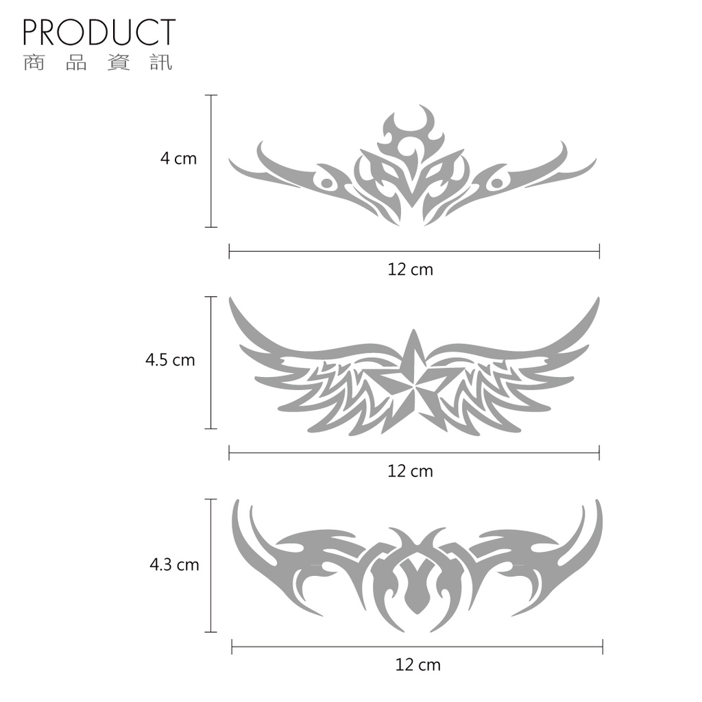 圖騰造型,罪惡之翼反光貼紙,適合在小地方做點綴。採用HHR專利技術網版印刷製作,貼紙具有防水、耐曬、高亮度反光等特性,非常適合作為車貼使用。