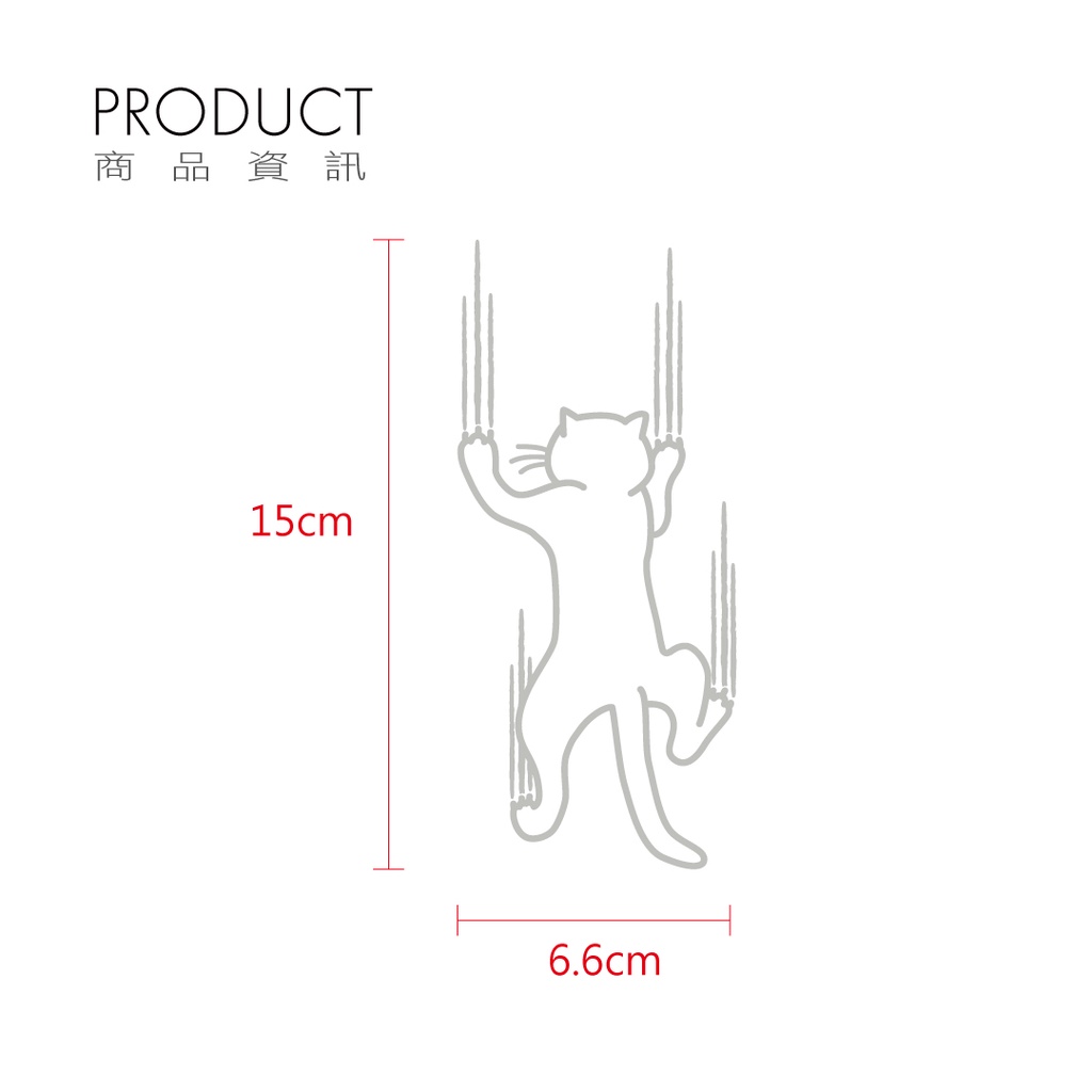 可愛爬牆貓反光貼紙,貓主子都快滑下去了!還不快過來護駕!採用HHR專利技術網版印刷製作,貼紙具有防水、耐曬、高亮度反光等特性,非常適合作為車貼使用。
