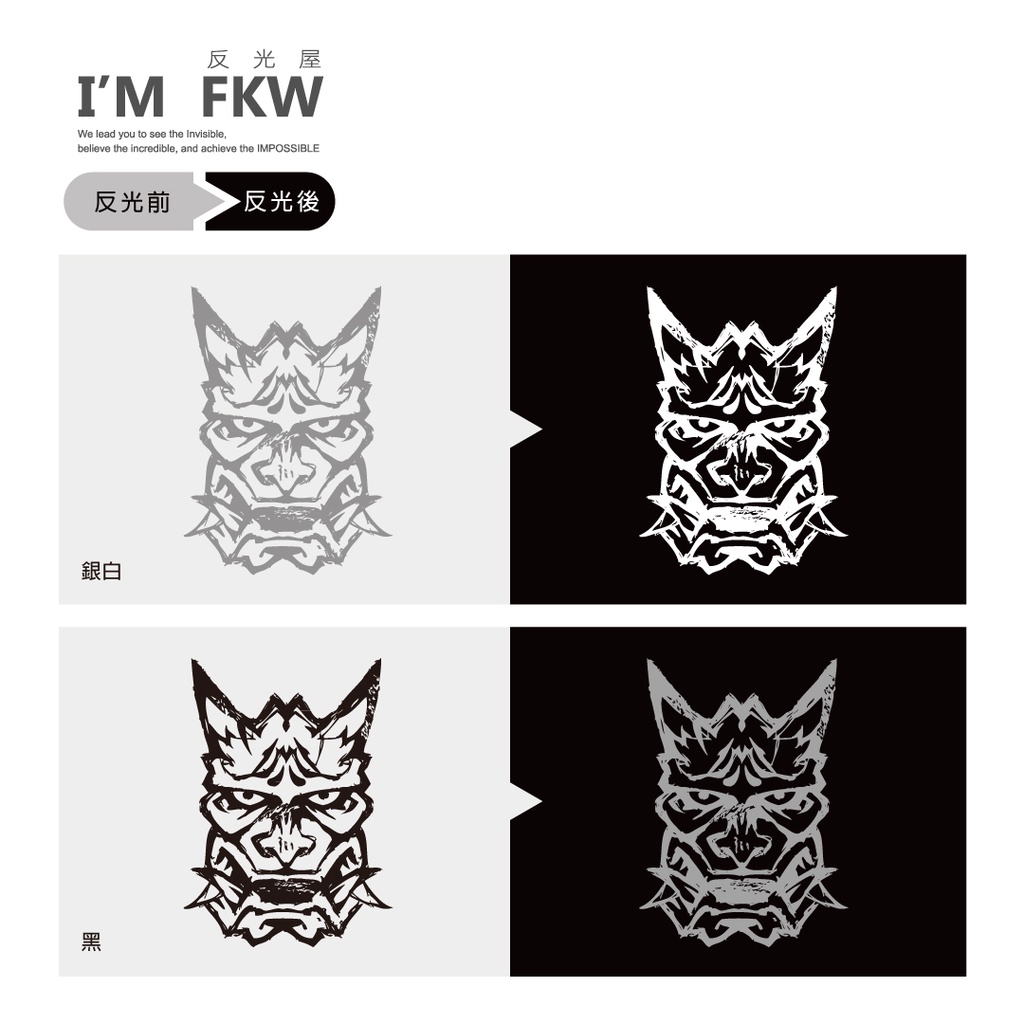 般若反光貼紙,惡魔系列反光貼紙,在車身貼上暗黑元素圖案吧!銀白、黑兩色,任你搭配車體,貼紙具有防水、耐曬、高亮度反光等特性,非常適合作為車貼使用。