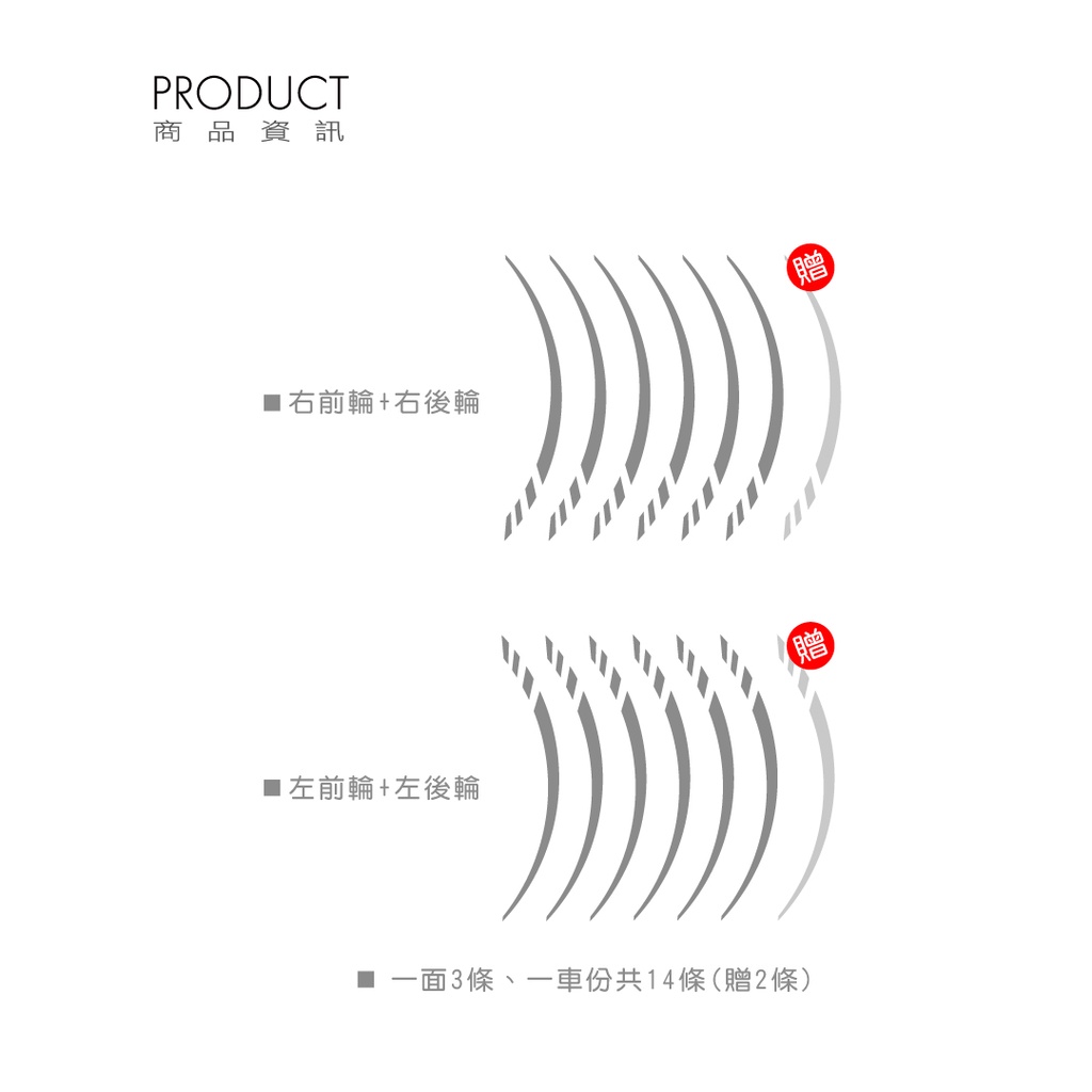 • 1部車購買1份即可,每份包含輪框貼(四面),並附贈兩條作備用