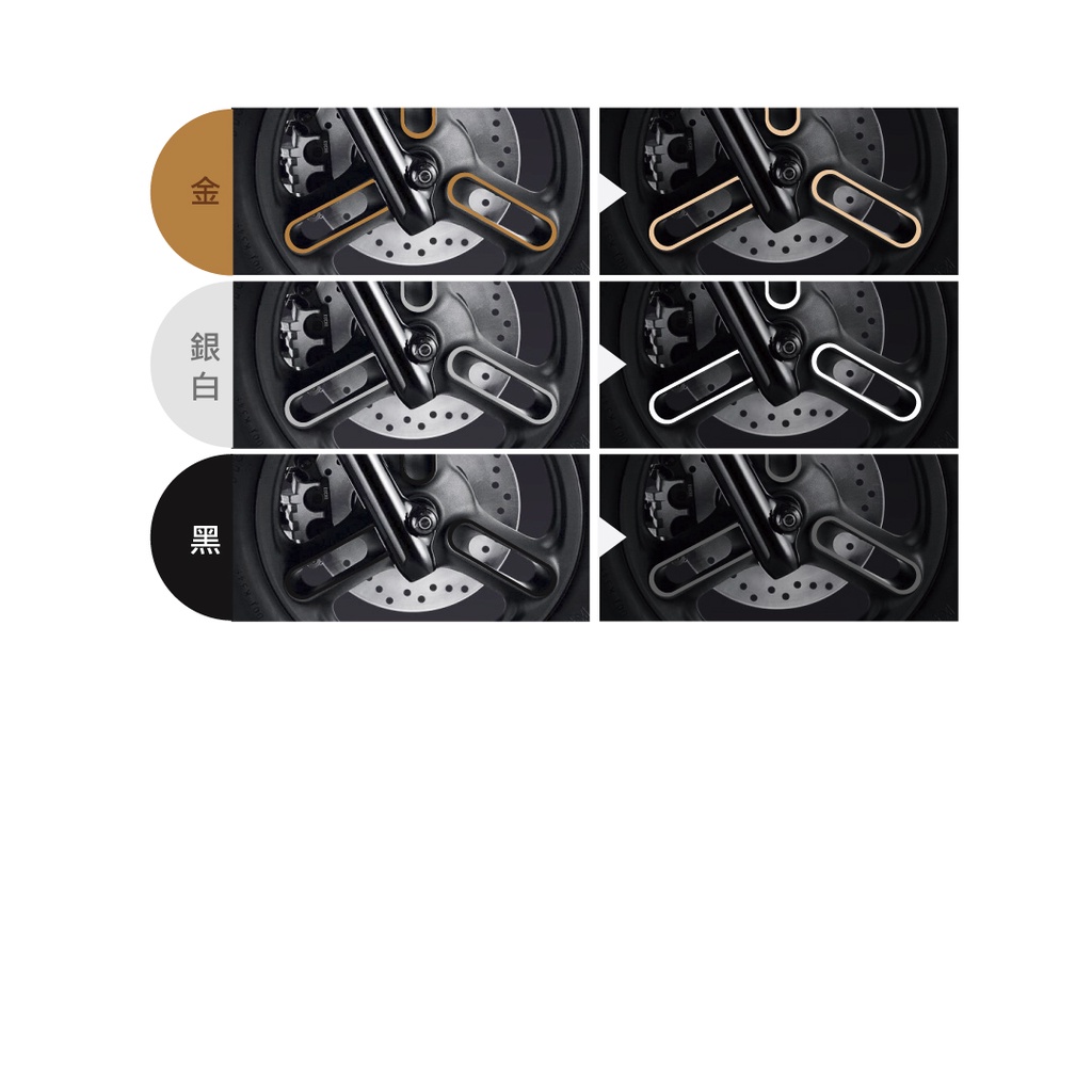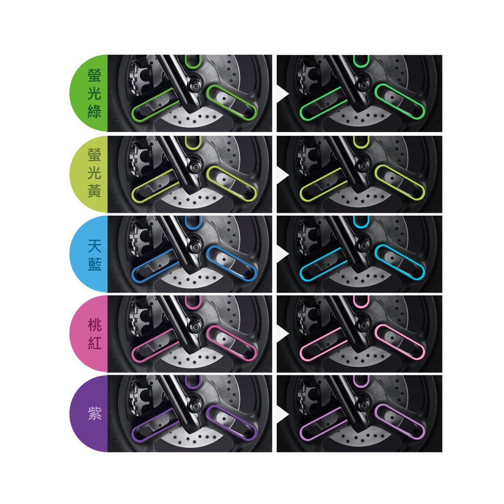 • 1部車購買1份即可,每份包含2面爪貼(前輪右側+後輪右側)