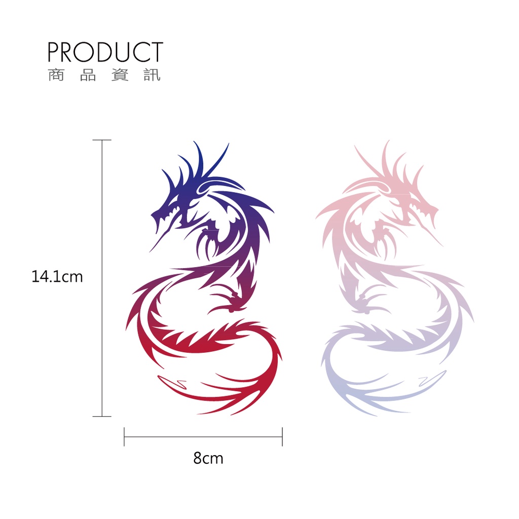 龍反光貼紙,一份就包含左右邊,圖騰造型超級帥,採用HHR專利技術網版印刷製作,貼紙具有防水、耐曬、高亮度反光等特性,非常適合作為車貼使用。