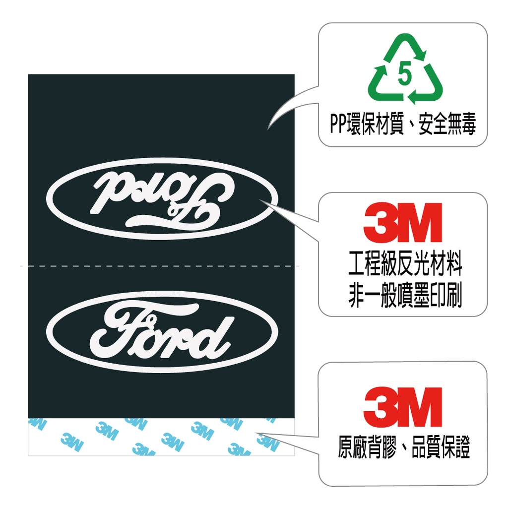 反光屋FKW FORD MUSTANG FOCUS ST KUGA ECOSPORT 通用 汽車反光水洗標 夾標 水洗標