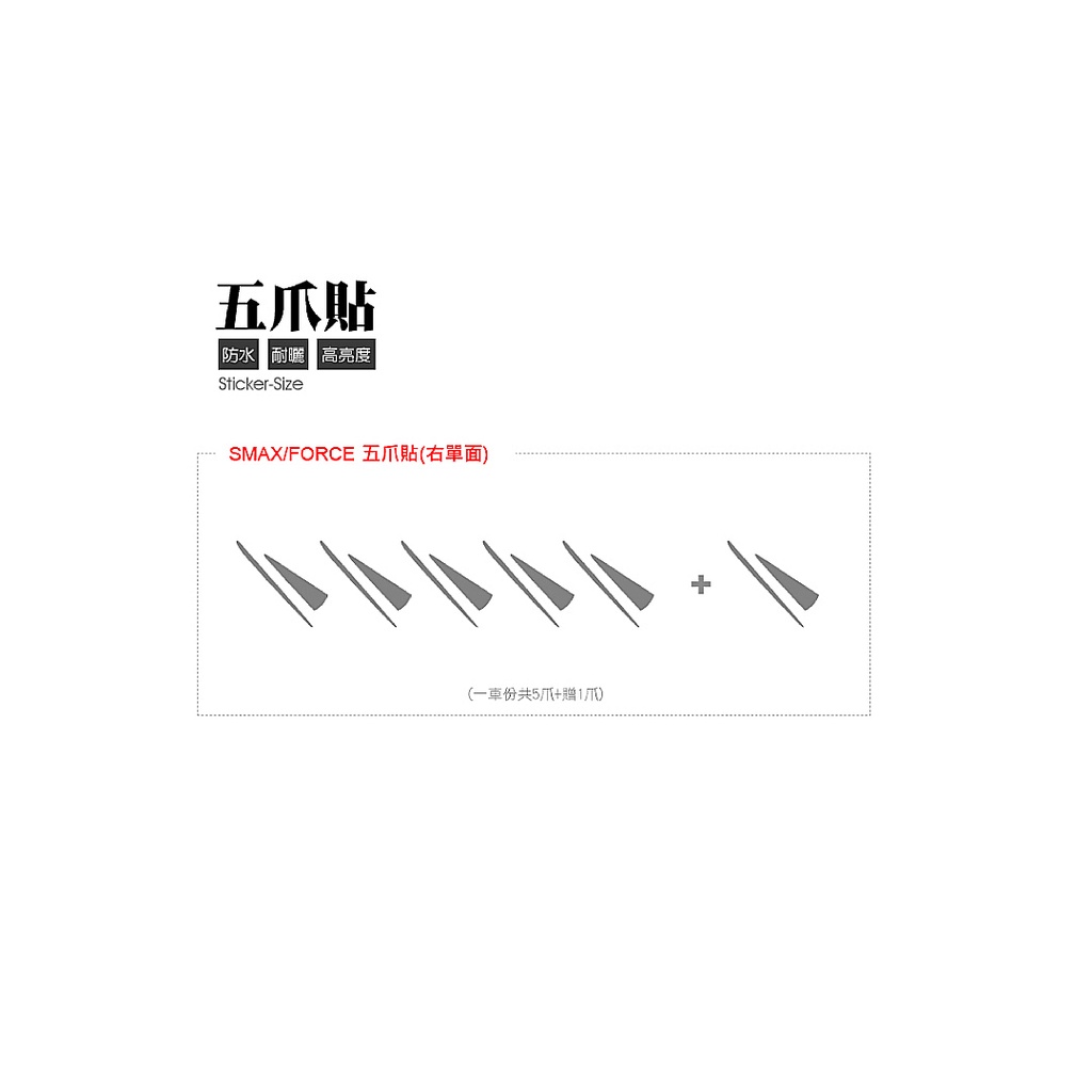 • 1部車購買1份即可,每份包含1面爪貼(前輪右側)