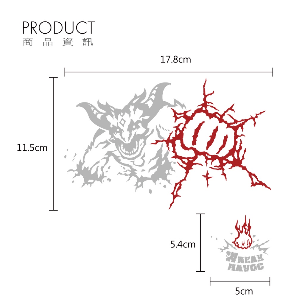 惡魔肆虐反光貼紙,鋪天蓋地的威力!採用HHR專利技術網版印刷製作,貼紙具有防水、耐曬、高亮度反光等特性,非常適合作為車貼使用。