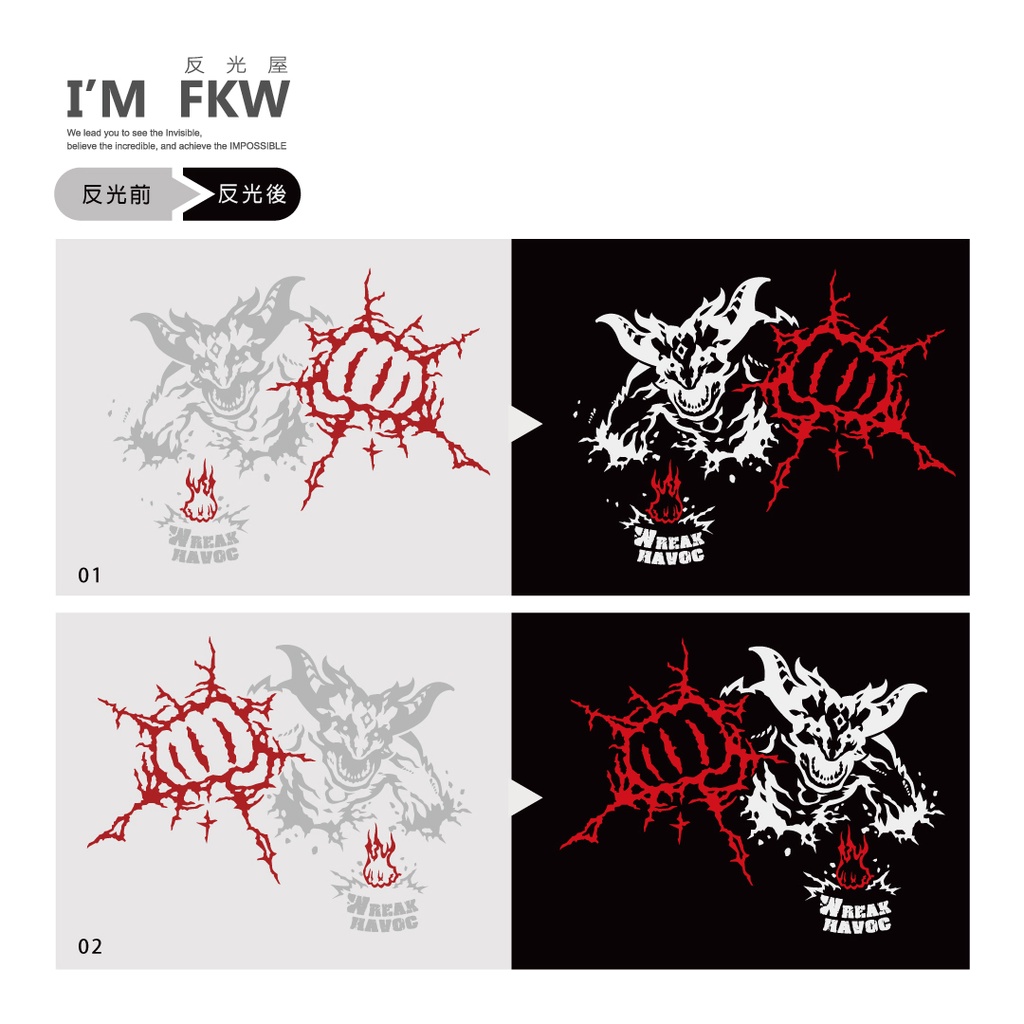 反光屋FKW 肆虐 拳頭 鬼怪 肆虐組合 手勢 對貼 反光貼紙 高亮度防水耐曬 個性化 機車汽車重機 車隊