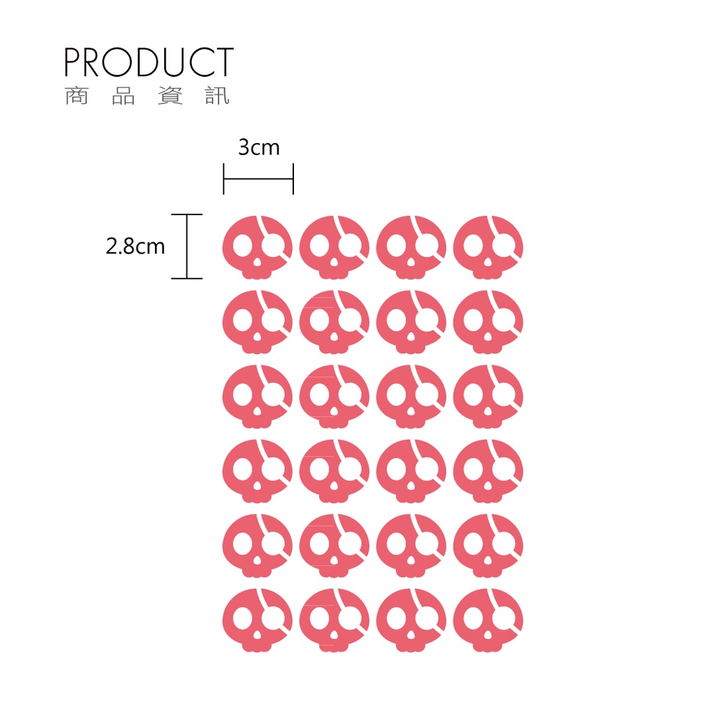 可愛骷髏反光貼紙,方便自行DIY 轉印貼式,採用HHR專利技術網版印刷製作,貼紙具有防水、耐曬、高亮度反光等特性,非常適合作為車貼使用。