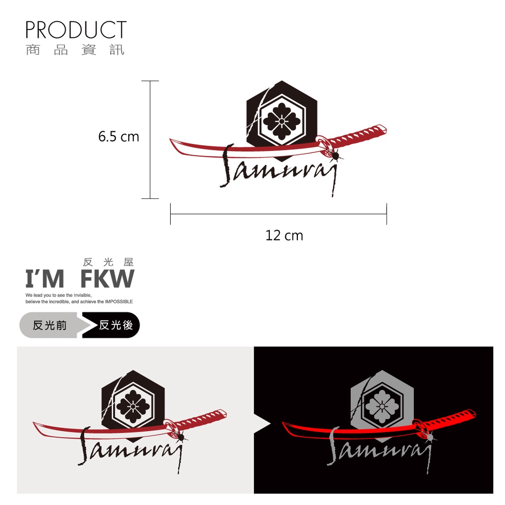 反光屋FKW 武士魂 刀 武士刀 日本風 日式 徽章 車貼 機車汽車重機車隊貼紙 反光貼紙 高亮度防水耐曬 個性化