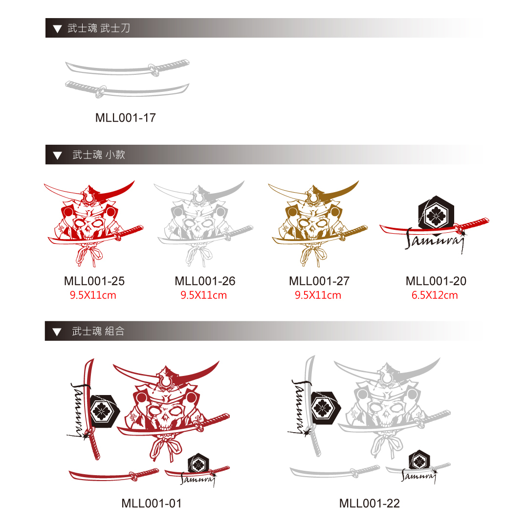 超熱門的武士魂反光貼紙,日式風格滿載,多種組合、顏色可供搭配!採用HHR專利技術網版印刷製作,具有防水、耐曬、高亮度反光等特性,非常適合作為車貼使用。
