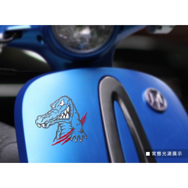 暴力鱷反光貼紙,採用HHR專利技術網版印刷製作,貼紙具有防水、耐曬、高亮度反光等特性,非常適合作為車貼使用。