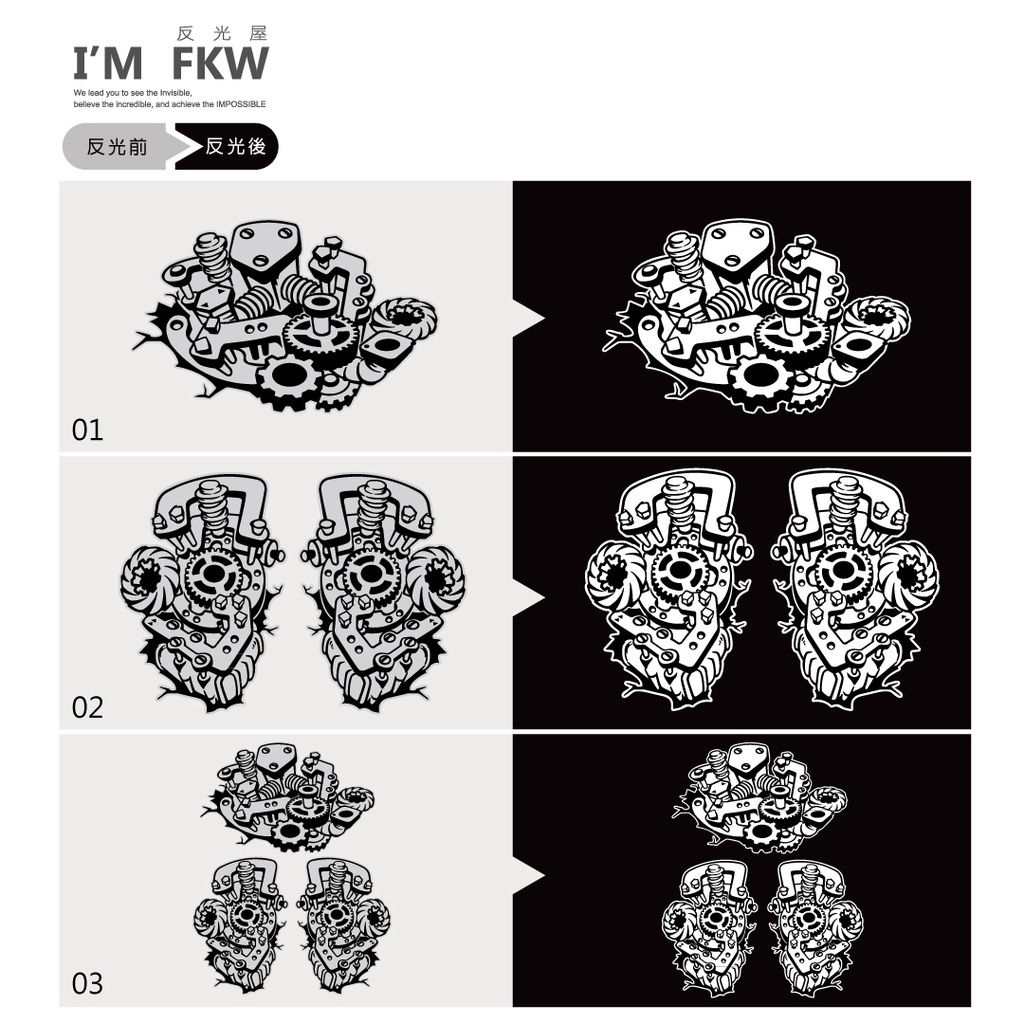 反光屋FKW 齒輪 機械 反光貼紙 營造機械感 魔鬼終結者造型 工業風 1組3張 防水車貼 機車貼紙 汽車貼紙