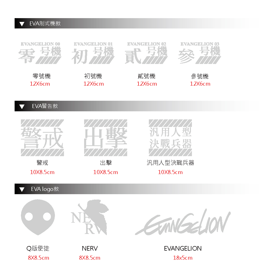 EVA 超世紀福音戰士 使徒 / NERV / EVANGELION!系列採用3M工程級反光材料製作,貼紙具有防水、耐曬、高亮度反光等特性,非常適合作為車貼使用。