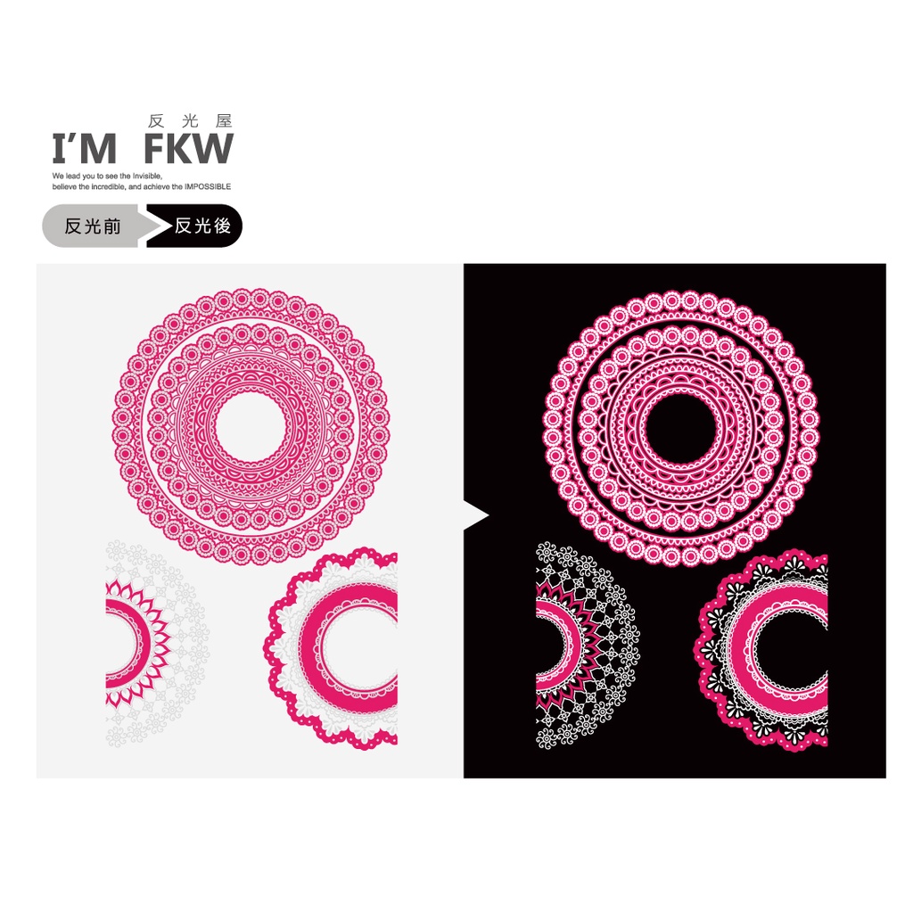蕾絲元素反光貼紙,可diy貼飾大面積車身,簍空細節更加精緻。採用HHR專利技術網版印刷製作,貼紙具有防水、耐曬、高亮度反光等特性,非常適合作為車貼使用。