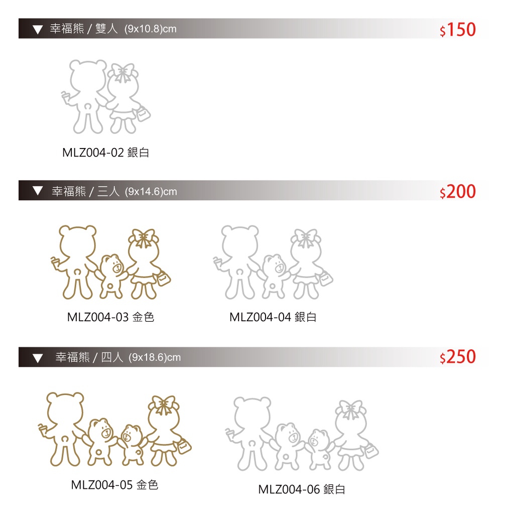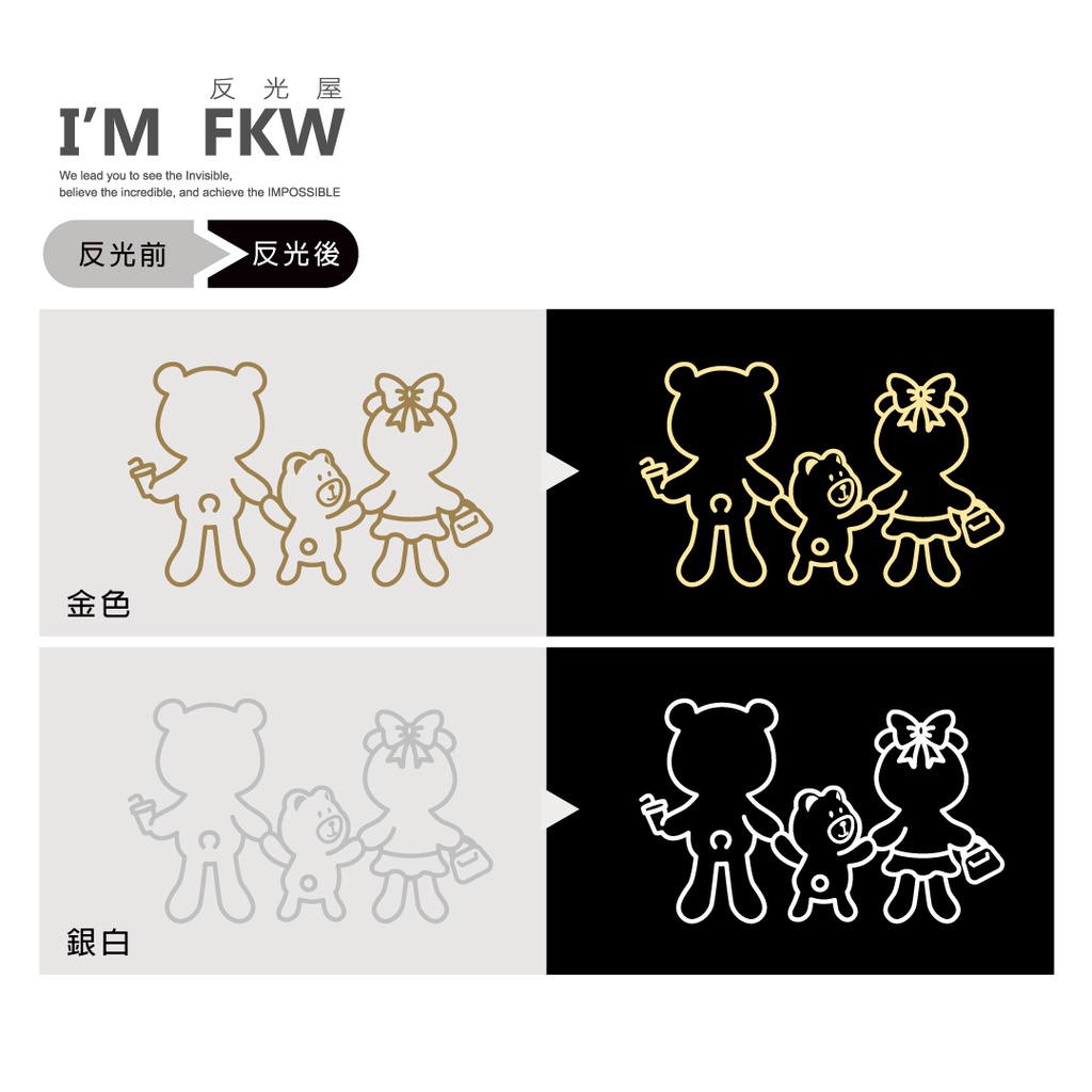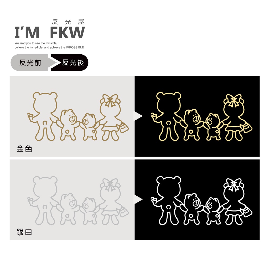 反光屋FKW 幸福熊 銀色 熊熊家族 DIY隨意貼 高亮度放閃 汽車貼紙 反光貼紙 後擋風玻璃 汽車車身 行車溫馨安全