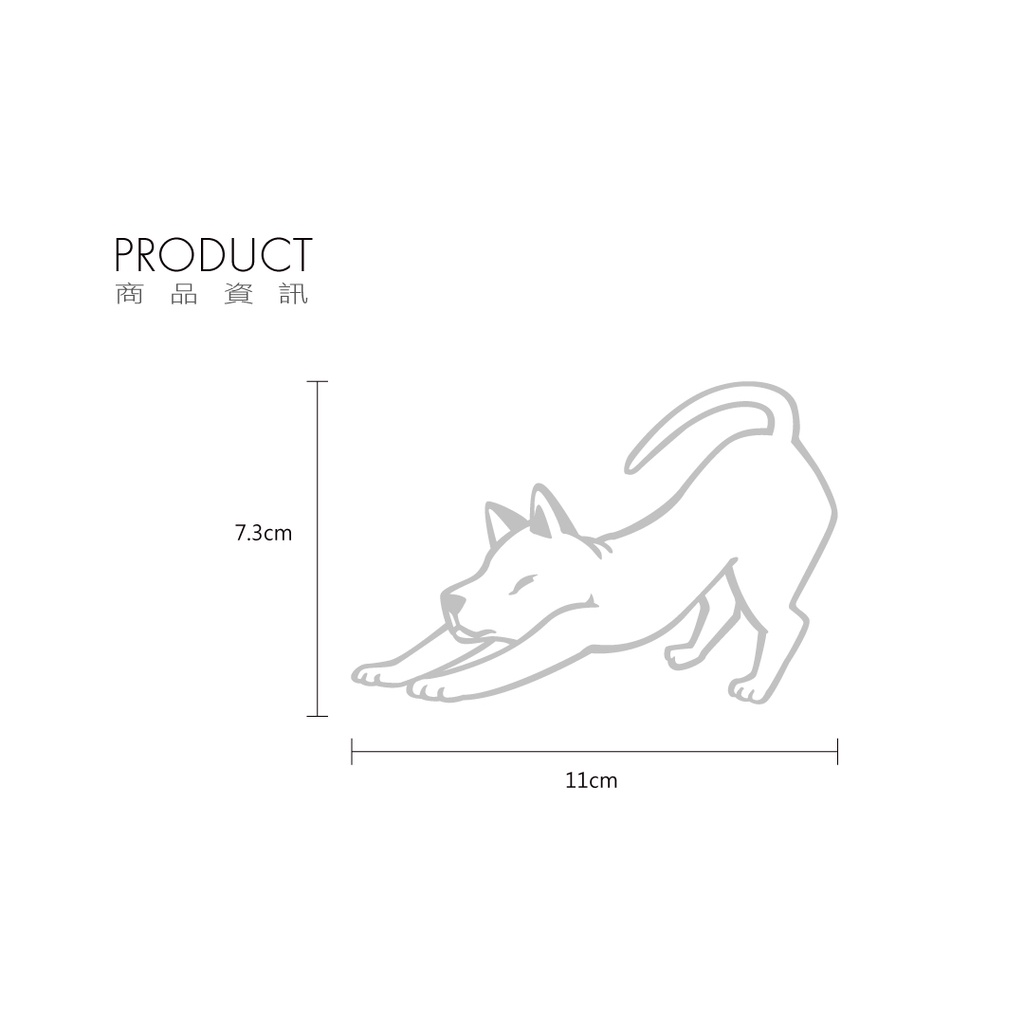 伸懶腰的狗反光貼紙,早起伸懶腰,開啟慵懶的一天吧!採用HHR專利技術網版印刷製作,貼紙具有防水、耐曬、高亮度反光等特性,非常適合作為車貼使用。
