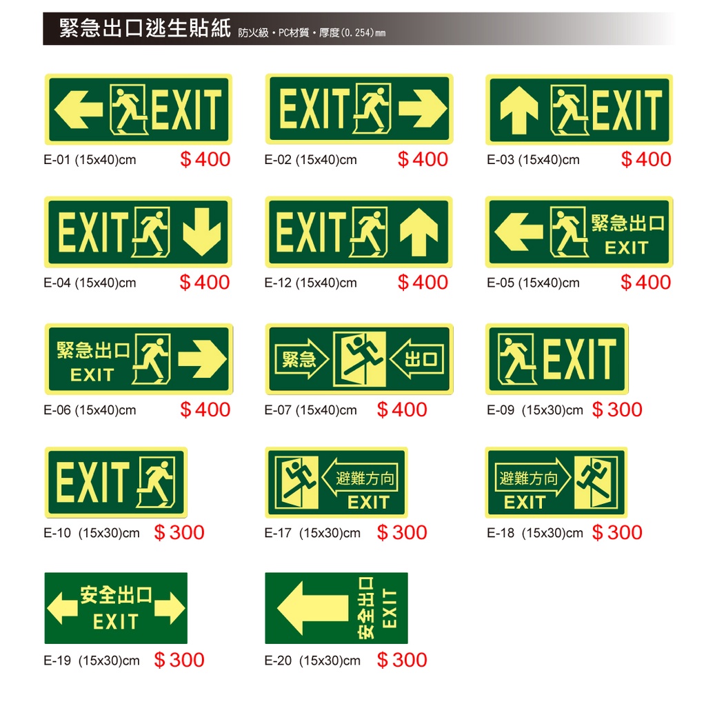 • 工安指示標誌、逃生警告標誌、停電、火災、地震、樓梯、地板、出口,可直接貼在牆壁、金屬、塑膠、橡膠、PC、壓克力