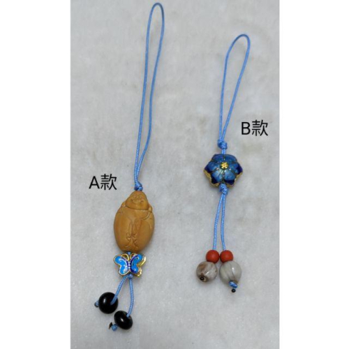 A款為橄欖核雕彌勒佛配景泰藍$450 B款為景泰藍$380 #手機吊飾 #包掛 #橄欖核雕 #特殊設計 #彌勒佛吊墜 #景泰藍