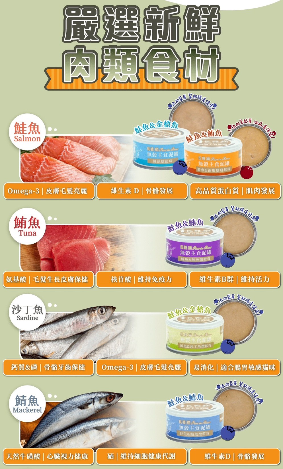 長靴貓主食泥罐嚴選八種美味口味,結合優質肉類與藍莓、蔓越莓,營養均衡、助於消化。 以新鮮食材細緻打成肉泥,輕鬆舔食。 無添加防腐劑,安全健康,給毛孩最安心的日常主食。