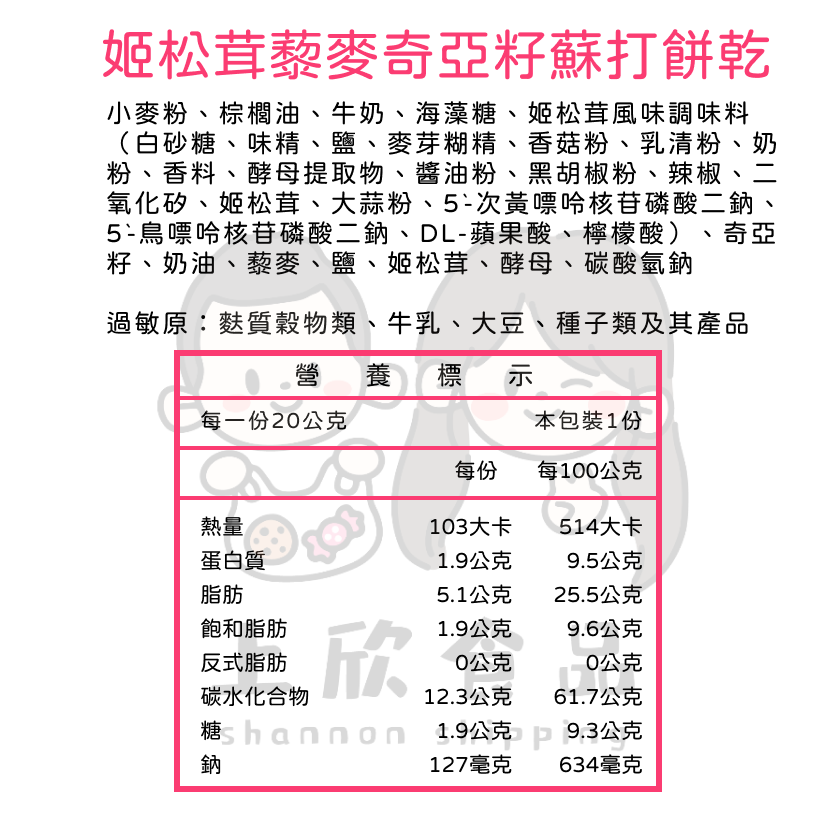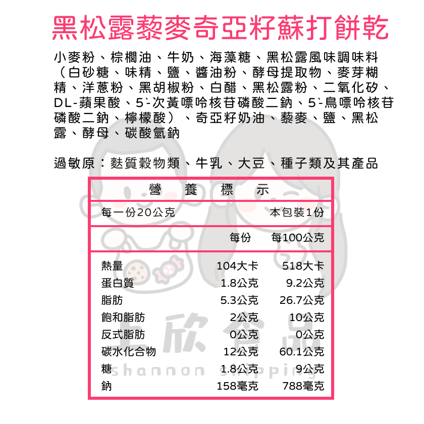 藜麥奇亞籽蘇打餅乾 3kg 蘇打餅乾 藜麥 奇亞籽 黑松露 姬松茸
