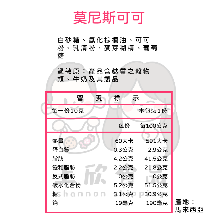 • 莫尼斯可可300g 約33入 以重量為主 莫尼斯可可300g 約33入 以重量為主