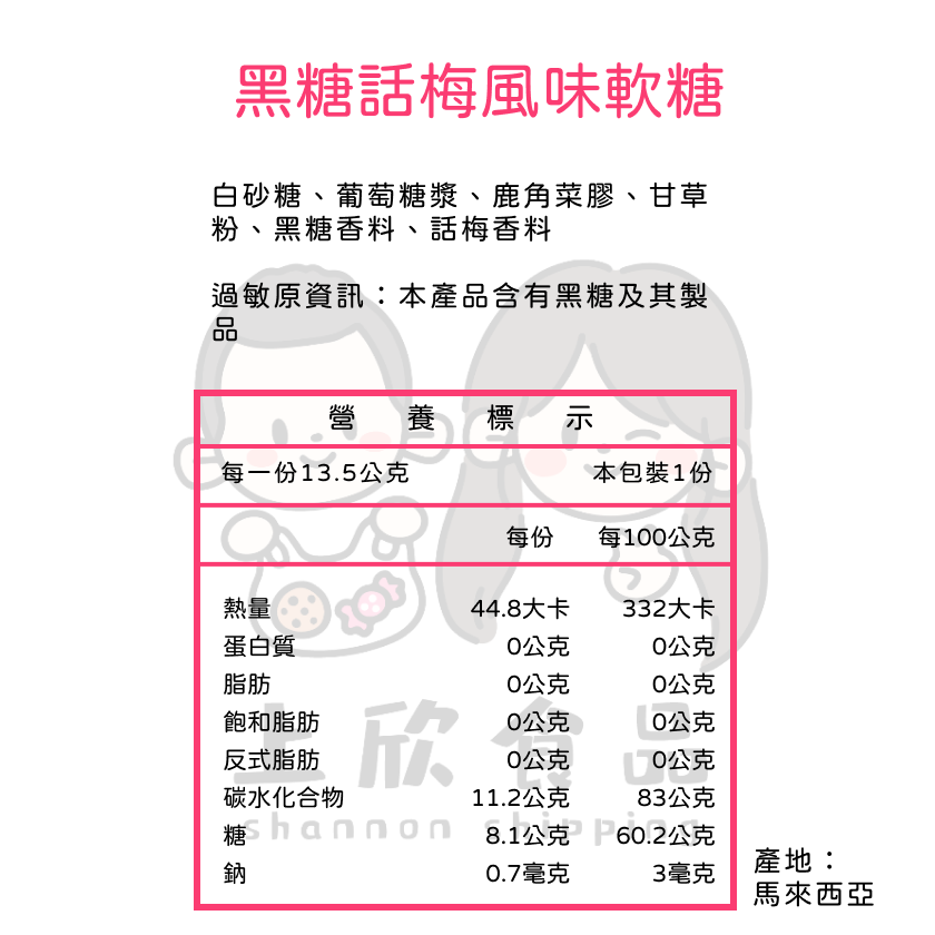 • 黑糖話梅軟糖 約42顆 以重量為主 黑糖話梅軟糖 約42顆 以重量為主