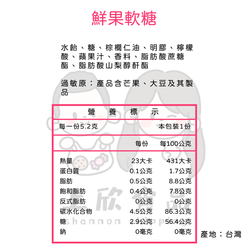 • 鮮果軟糖一份 600g 約100顆 鮮果軟糖一份 600g 約100顆