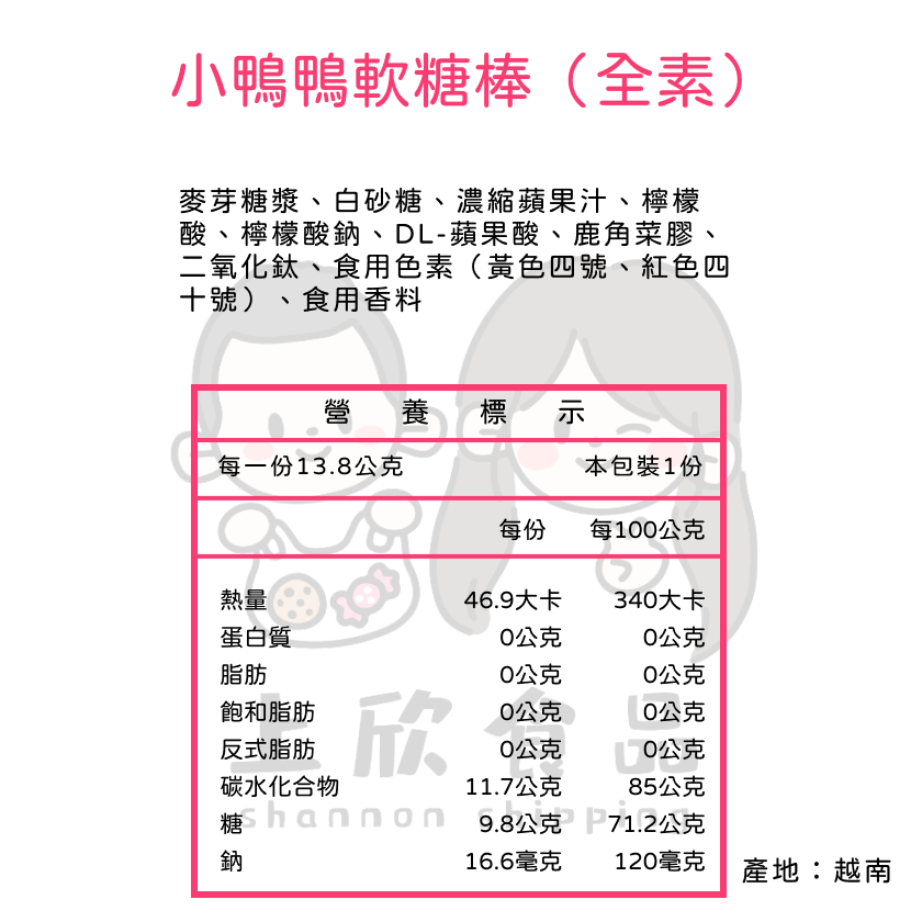 • 小鴨鴨軟糖棒600g 約40支以重量為主 小鴨鴨軟糖棒600g 約40支以重量為主