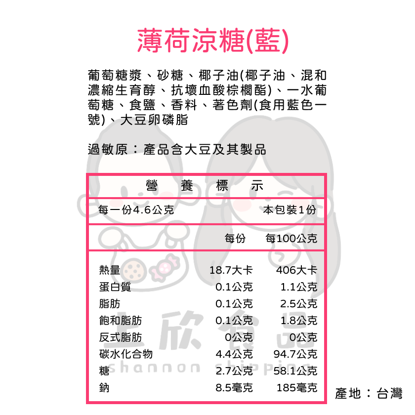 • 藍:薄荷涼糖 以重量為主 藍:薄荷涼糖 以重量為主