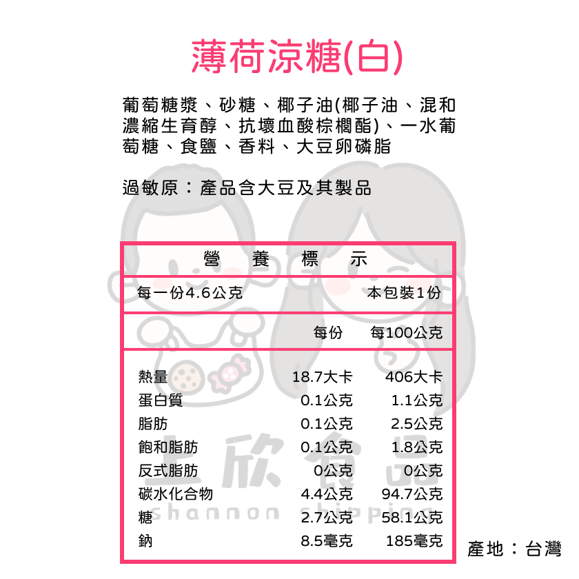 • 白:薄荷涼糖 以重量為主 白:薄荷涼糖 以重量為主