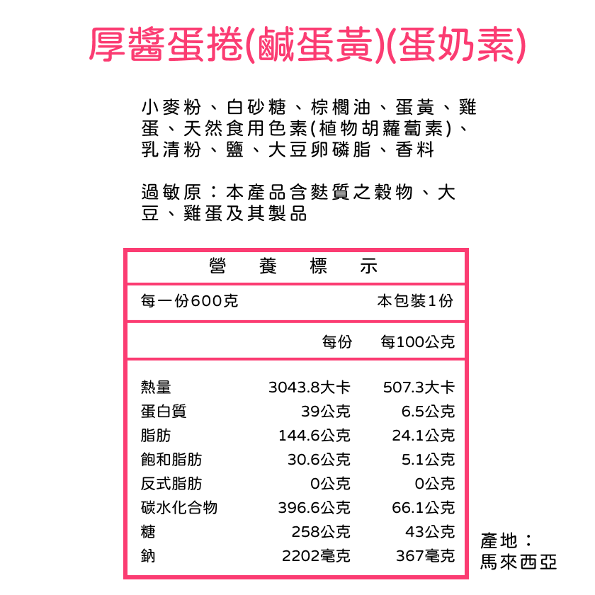 爆餡鹹蛋黃厚醬蛋捲 600g 濃醬鹹蛋黃流心蛋捲 起司蛋捲 鹹蛋黃蛋捲 厚醬蛋捲 酥脆濃香鹹甜口感 辦公室團購零食