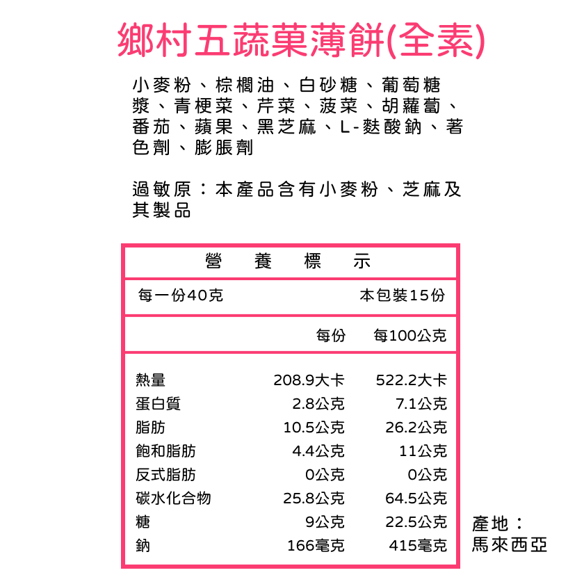 • 五蔬果薄餅 1袋15入 五蔬果薄餅 1袋15入