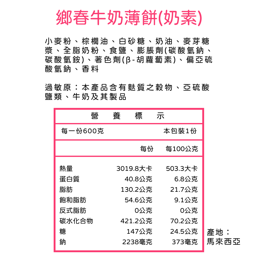 鄉春牛奶薄餅 600g 小包薄餅 牛奶口味 奶素 小點心 幼兒園餅乾