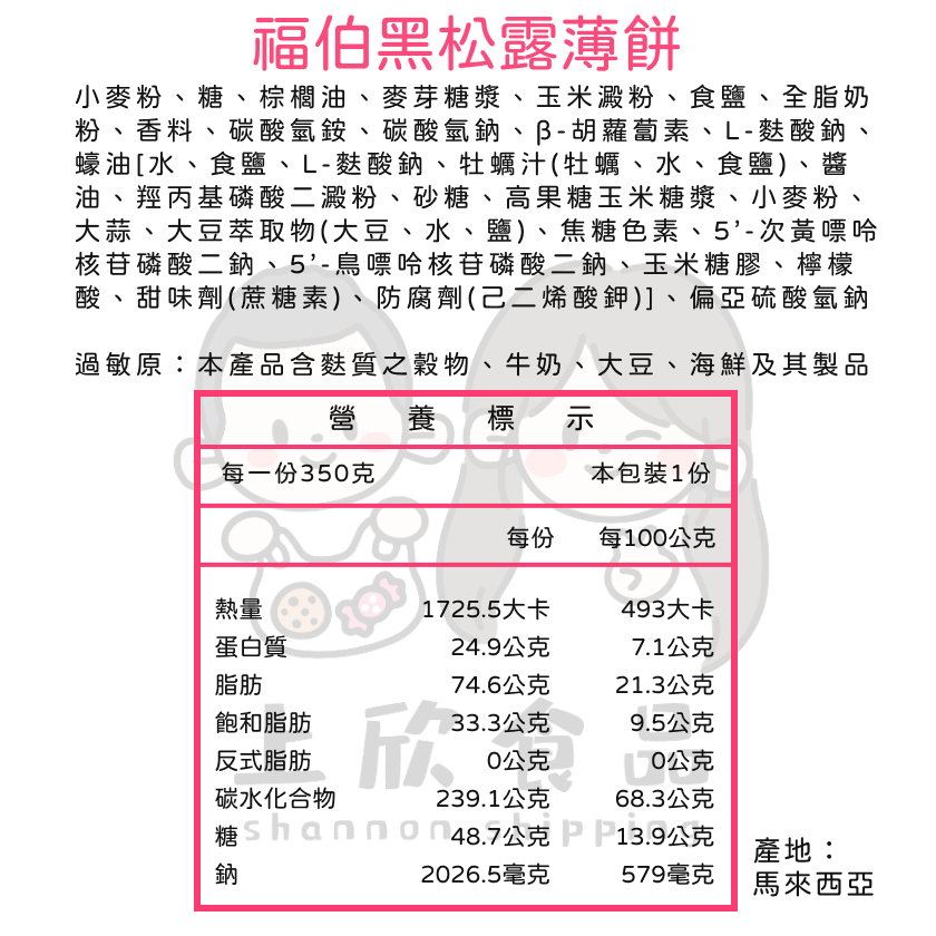 • 福伯黑松露薄餅 一包 福伯黑松露薄餅 一包
