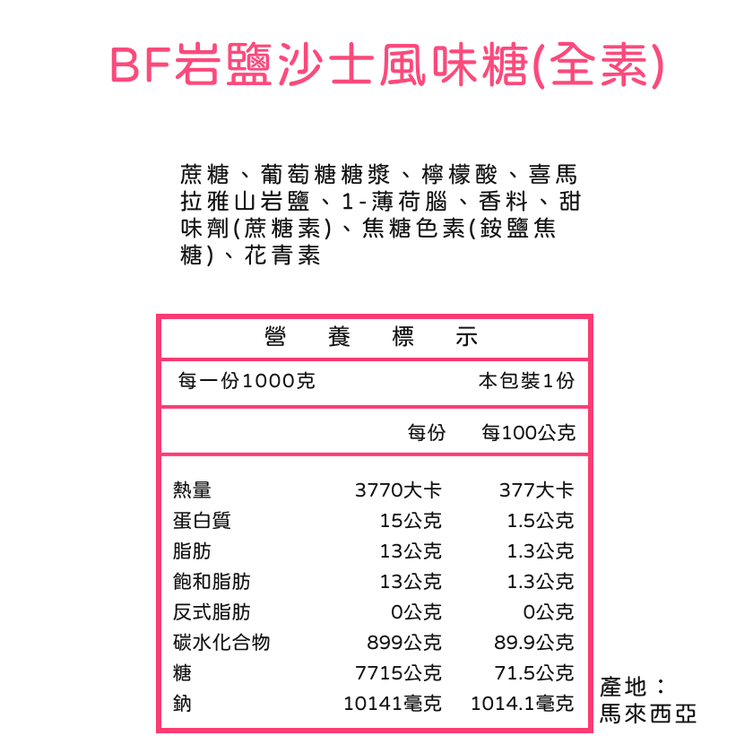 • BF岩鹽沙士風味糖 一包1kg約350顆 BF岩鹽沙士風味糖 一包1kg約350顆