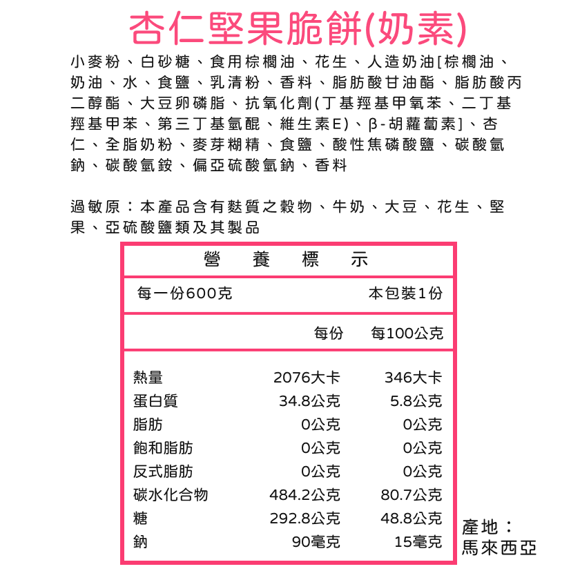 • 杏仁堅果脆餅 600g 約28包 杏仁堅果脆餅 600g 約28包
