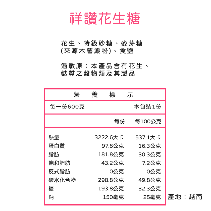 祥讚花生糖 花生糖 傳統花生糖 濃郁花生香 香脆花生糖 年節伴手禮 台灣傳統糖果 懷舊零食