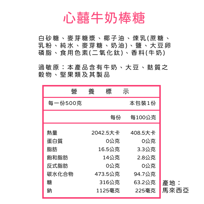 • 心囍牛奶棒糖500g 約37支 心囍牛奶棒糖500g 約37支