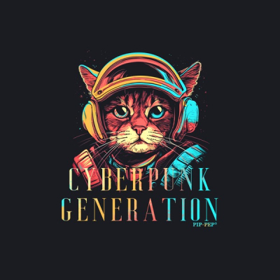 台灣TAIWAN自創品牌潮流T恤-圓領短袖T(轉印)-pip-pep-賽博龐克貓