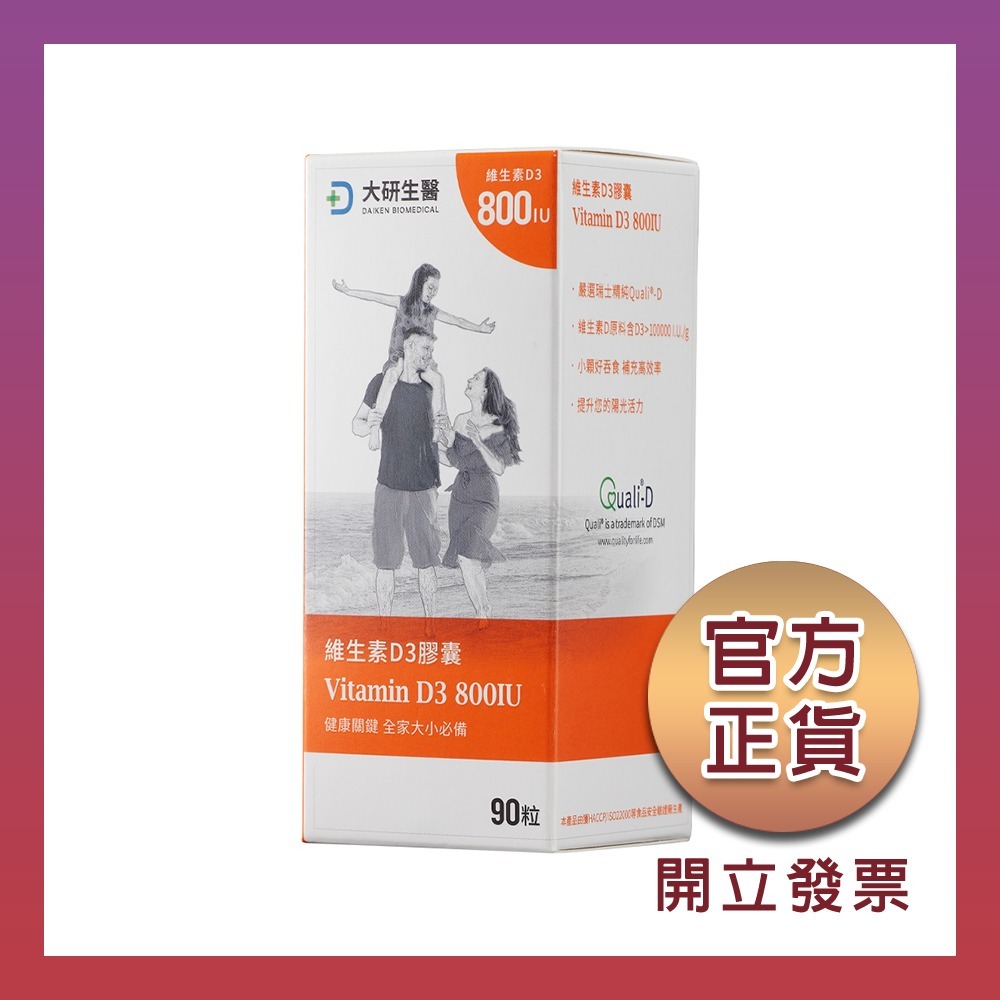 您想要邁向陽光健康生活嗎?那缺D可萬萬不可! 大研維生素D3膠囊提升您陽光活力。 1.使用全球百年大廠DSM瑞士頂級Quali®-D維生素D3 2.萃取自天然羊毛脂,嚴選高純度中鏈三酸甘油酯萃取 3.顆粒小容易補充,補充高效率 4.一顆補足800IU維生素D 5.一盒內含90顆 製造日:依商品外印刷日為準 到期日:因本賣場出貨量大,出貨時,無法確認本筆訂單的出貨商品 製造日期是否為同一天,但會幫買家確認離到期日尚有1/3(三分之一)以上時間,如有特殊需求請勿購買!! ※推薦給這些朋友們 忙碌青壯年 一人吃兩人補哺乳媽媽 備孕懷孕高需求 銀髮長輩提高保護力 1.商品組合/規格:90粒/盒 2.商品品名:大研維生素D3膠囊 3.商品重(容)量:每粒380毫克。 4.內容物成分(如含有豬、牛成分請加註國別):請詳商品圖。 5.食品添加物名稱:無 6.原產地(國):台灣(維生素D原料產地:瑞士) 7.製造廠商或國內負責廠商名稱:大研生醫國際股份有限公司 8.製造廠商或國內負責廠商地址:台北市大安區羅斯福路三段37號12樓 9.製造廠商或國內負責廠商電話:0800-000-028 10.保存期限:三年(未開封) 11.一日請勿超過1粒,多食無益。 本產品投保新光產物新台幣1億元產品責任險,投保金額不等於理賠金額。 備註欄: 1.請置於陰涼乾燥處,避免陽光直射。 2.新舊包裝隨機出貨,以實際收到的商品為準。 3.本賣場有其他大研生醫之保健食品,歡迎參觀選購。 4.超取限制 5KG (5000g) 以下,請自行留意下 您在這個賣場內選購的商品 於購物車內 所有購買的總商品公斤重! 計算總重時,請大概計算下商品的重量要低於4KG(4000g/4000ml/4L) 以內,以免超重! *我們公司出貨的紙箱 ( 約500g+-10%/個 )、包材 及 誤差值,也請自行加入合計重量!! (如遇超重、超材包含有長寬高限制情況,本公司將視情況直接解除該筆訂單,並請您重新下單一次) 《常見問題集》 Q:大研維生素D3膠囊何時吃最好? A: 維他命D因為是脂溶性維生素,因此通常建議在飯後食用,可幫助提高維生素D吸收效果。 Q:素食者可以補充維他命C嗎? A: 大研維生素D3膠囊為葷食,素食者不建議食用。 Q:孕婦適合補充大研維生素D3膠囊嗎? A:適合,哺乳婦女也非常適合補充,維生素D可以藉由乳汁分泌給予寶寶營養補充。