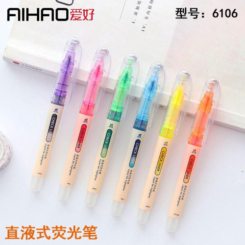 愛好文具 6016 螢光筆 直液式 糖果彩色 劃重點 標記筆 6色 兒童可愛卡通 辦公文具