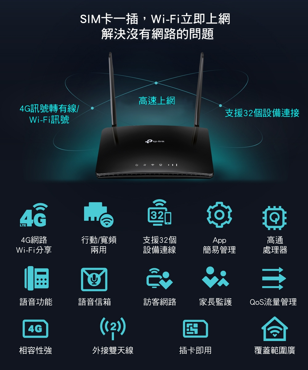 TP-Link TL-MR6500v 4G LTE 分享器 路由器 WIFI SIM卡 VoIP/07142 光華商場