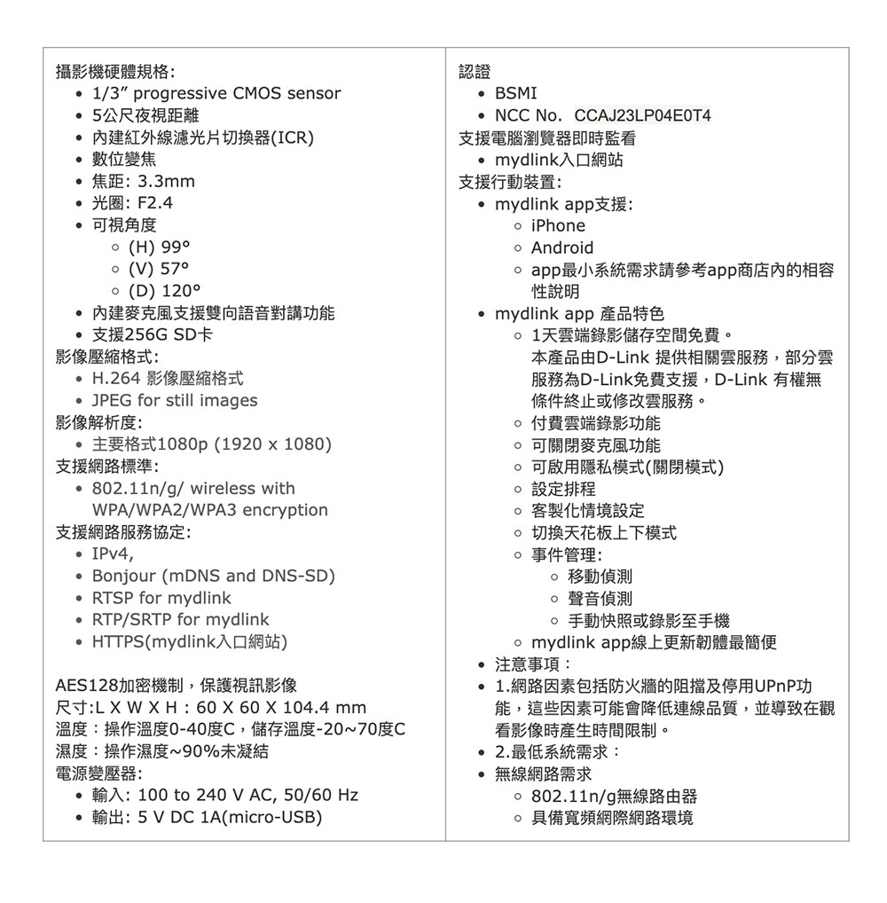 D-Link 友訊 DCS-6100LHV2 Full HD 迷你 無線 網路攝影機 DCS-6100LH 迷你攝影機