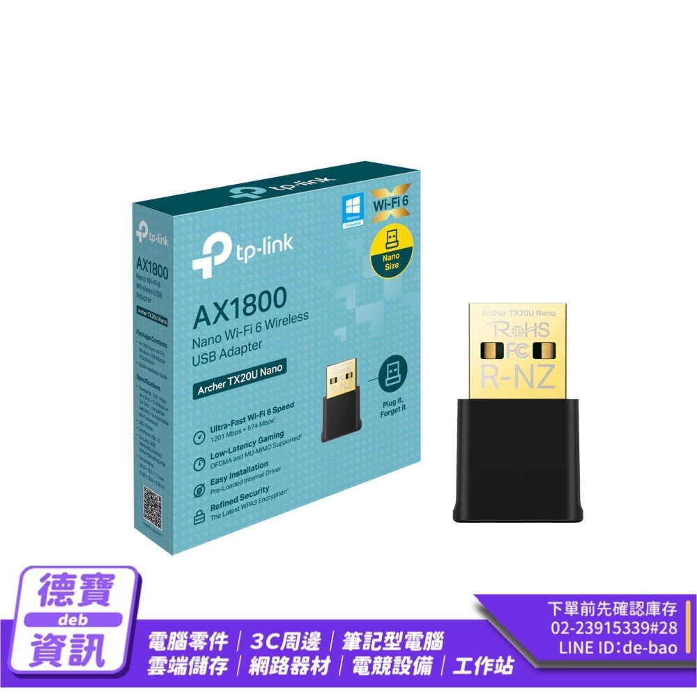 包裝內容 AX1800 微型 Wi-Fi 6 無線 USB 網卡 TX20U Nano
