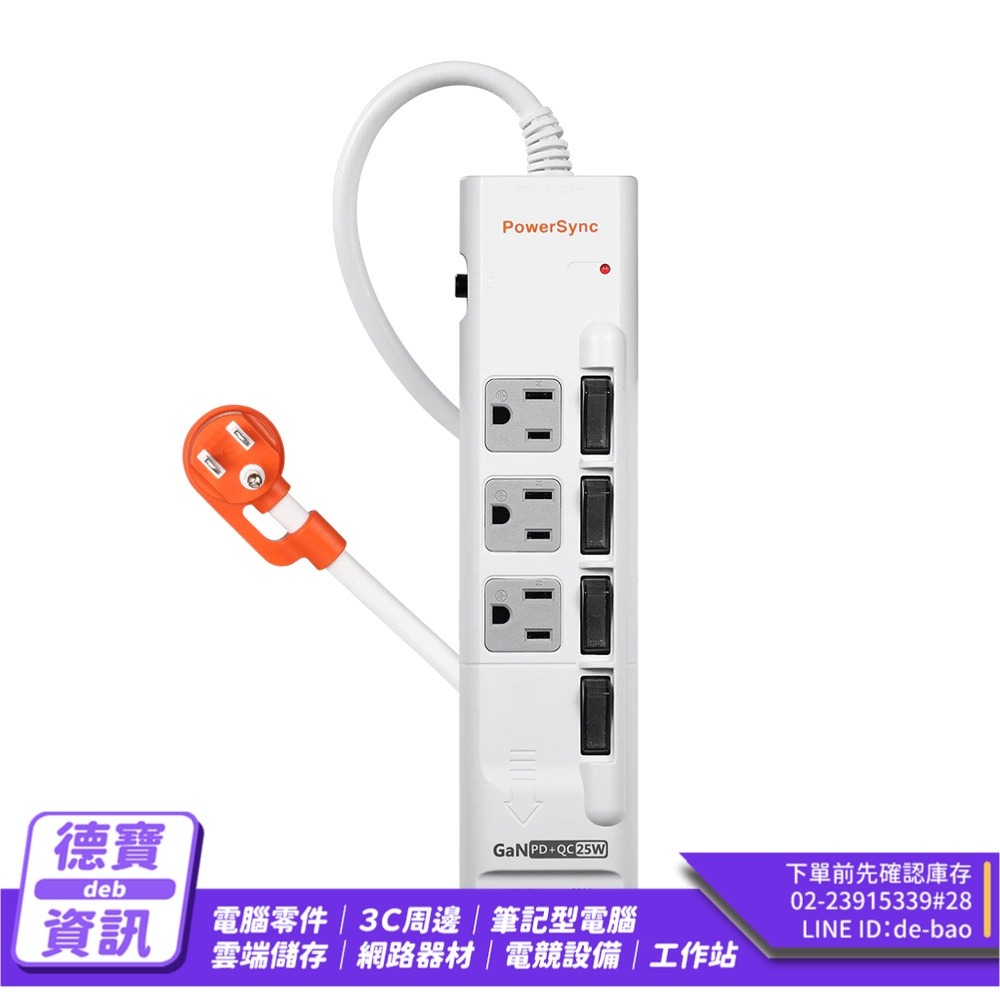 ● 品名:4開3插GaN快充防雷擊延長線(白色)