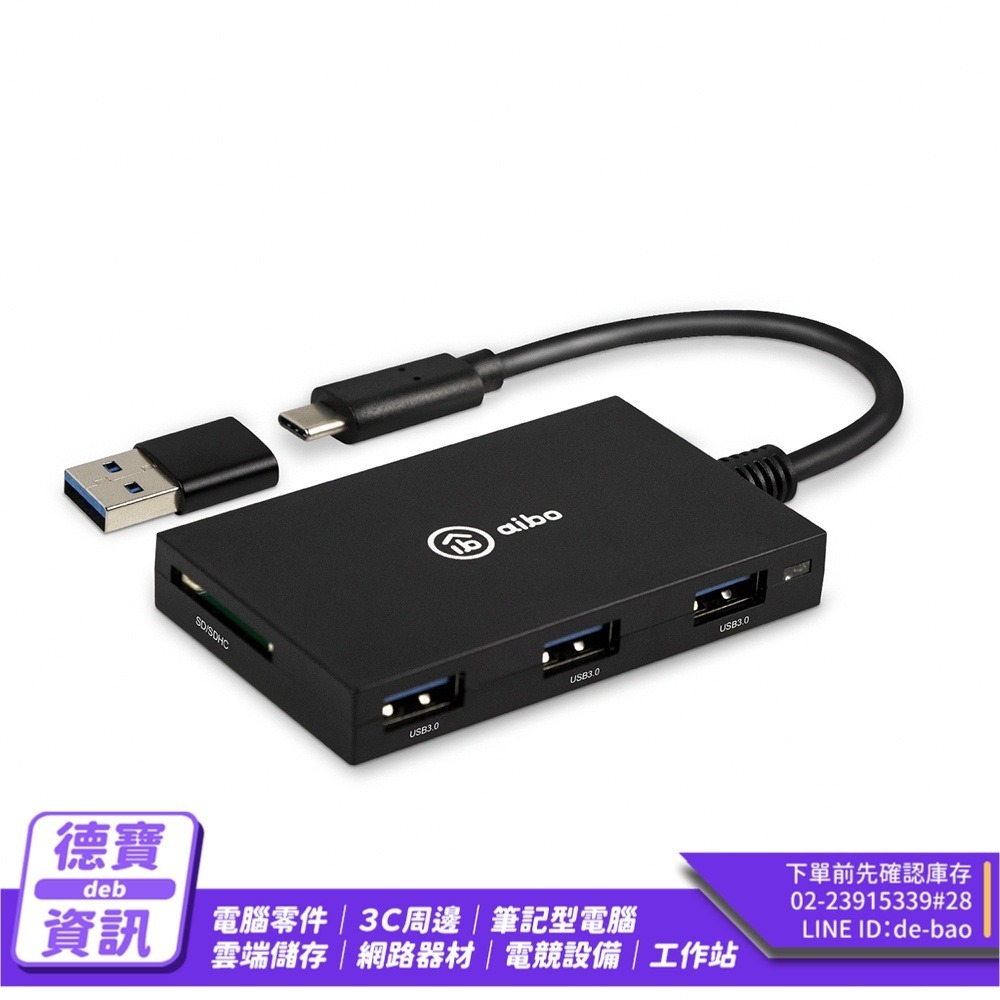 aibo ABX3 Type-C ATM+記憶卡+3.0HUB 多合一晶片讀卡機(附轉接頭)