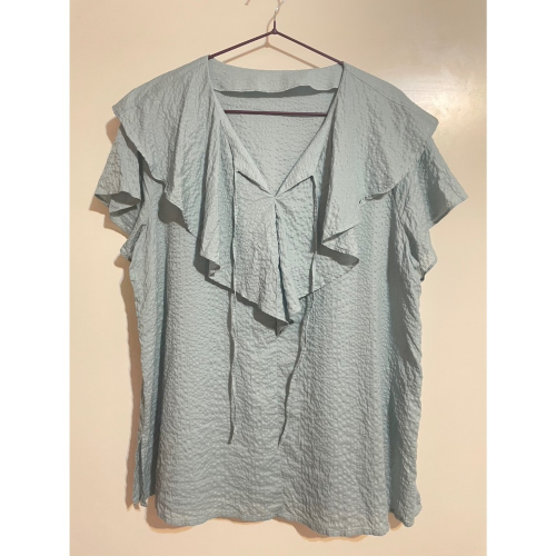 專櫃MK湖綠色泡泡紗荷葉領襯衫/二手/38號