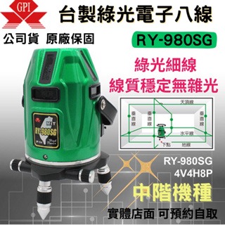 【五金大王】正台製 GPI 上煇 RY-980SG 綠光 電子式水平儀 4V4H 室內外8線8點 雷射儀器 墨線儀